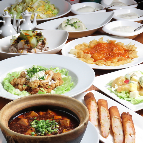 歓送迎会宴会にぴったりな豪華コースが登場、当店人気NO1四川激辛麻婆豆腐・NO3・海鮮春巻き・ 油淋鶏といったボリューム満点メニューが盛りだくさん♪上海モダン自慢の絶品料理を丸ごと楽しめるお得なコースです◎