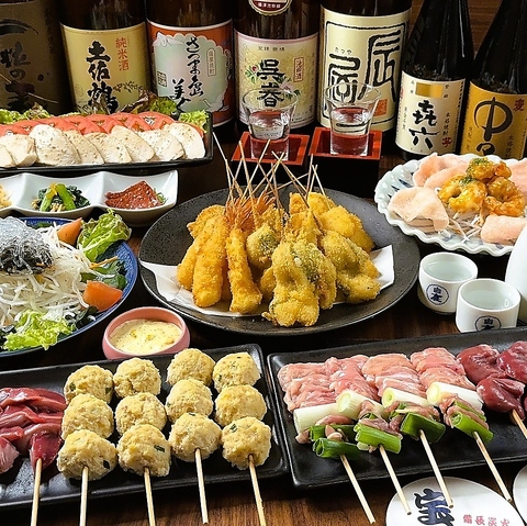 人気メニューの焼き鳥と海鮮串カツが一緒に楽しめるコース!海藻を5種使い青じそで仕上げたヘルシーなサラダ。志摩産のあおさを使った〆にもってこいのアツアツあおさ茶漬け。120分飲み放題が付いているコースになっております♪楽しい時間のお供にぜひ!!ご予約、お待ちしております!