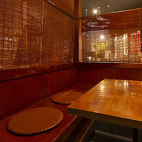 デートや女子会、お友達同士でのお食事などに最適のお席です。半個室のプライベート空間でごゆっくりお楽しみいただけます。テーブル席なのでお履き物の着脱が不要。最大3名様までと少人数向けのリラックスできるお席です。
