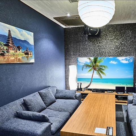 【完全個室リゾート空間♪】パセラのバリ島をモチーフにしたラグジュアリーなお部屋は、全室カラオケ・DVD&ブルーレイプレイヤー・コンセント・充電器完備!大画面のモニターやスクリーンでカラオケを楽しむも良し!お手持ちのスマホをミラーリングしてライブ配信などの映像コンテンツを仲間と鑑賞して楽しむも良し!