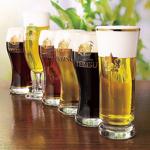 専門店ならではの4種類のヱビスビールや一度注ぎの黒ラベル、エーデルピルスなど種類豊富です。