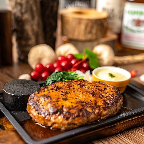 自家製ひき肉の手捏ねハンバーグを本格BBQグリルの炭火焼きでご提供ディナーでは、サイズも選べます!