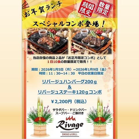 手捏ねした肉汁たっぷりの神戸牛入りハンバーグや、厳選した牛肉のステーキなどRIVAGEこだわりの料理を販売しております。