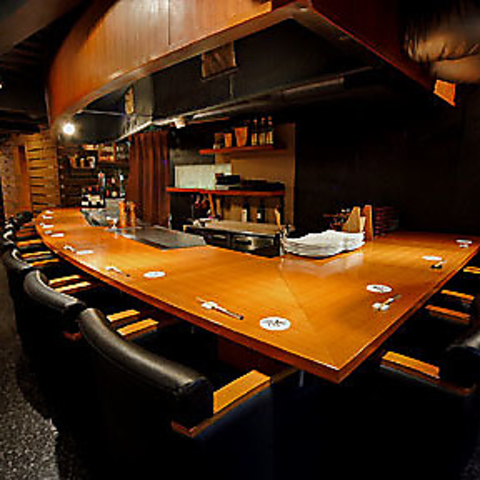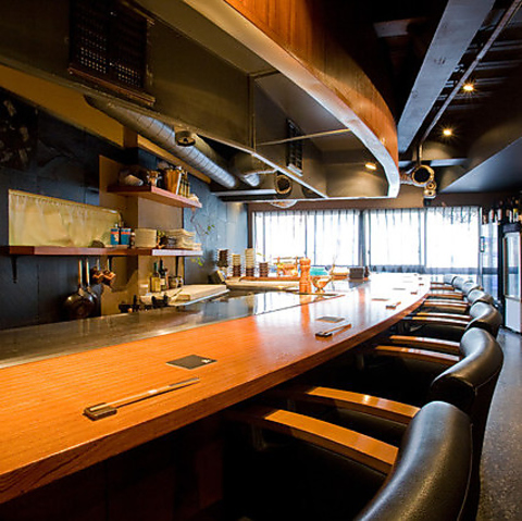 ライブ感溢れる鉄板カウンター席 1名様にもオススメ!お気軽にお立ち寄り下さい。