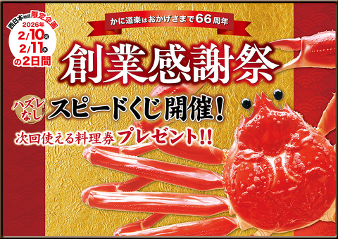 感謝の証として、特別な体験とおもてなしで皆様をお迎えいたします。企画内容としてお越しいただいた全てのお客様にスピードくじを引いていただきます。はずれくじ「なし」!!・チケット抽選期間:2026年2月10日(火)・2026年2月11日(水)2日間