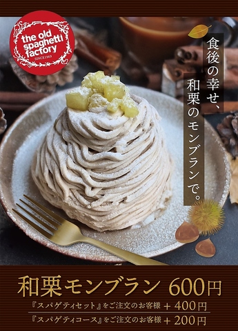 食後の幸せ、和栗のモンブランで♪ セットご注文のお客様+400円 コースご注文のお客様+200円