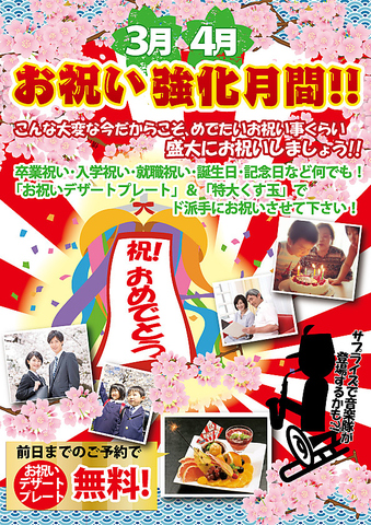 卒業や入学などお祝いいっぱいの3月4月!お祝いと言えばのざうお綱島店!お祝い強化して盛り上げます!!