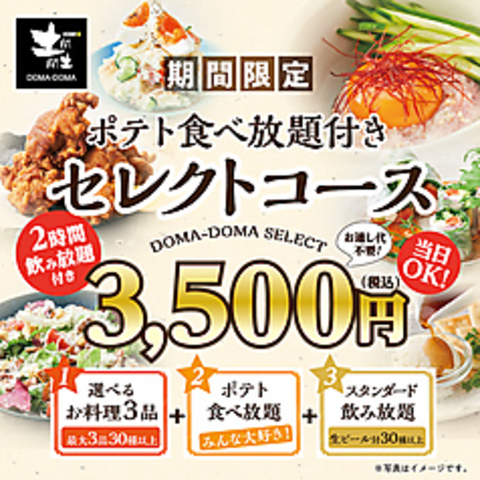 | 食べ放題 | あり :大人気!ポテト食べ放題付きセレクトコース |
