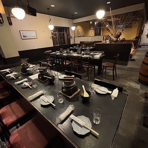 テーブル席、奥のお座敷ではどちらも20名がゆったりお座りいただけます。雰囲気によってお選びください。
