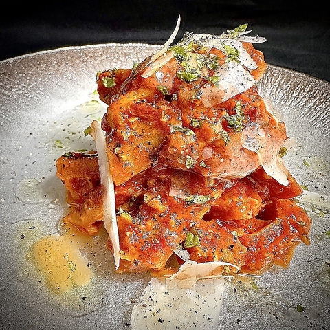 牛ほほ肉は牛一頭から約1Kgしか取れない希少部位!2種類の赤ワインでほろほろになるまで煮込みました。ほほ肉の旨みとシェフの技術が凝縮された逸品です。