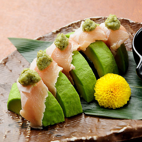 専属の養鶏場から徹底的に衛生管理された環境で地鶏をご提供。「鳥刺し」でも安心してお食事いただけるよう、地鶏の出荷から店舗での調理まで"一貫体制"でお届けさせていただいております。奥深い味わいと程よい甘さが特徴の地鶏の刺身の味わいを、最高のおもてなしと安心でお届けいたします。