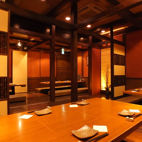 純和風の空間で落ち着いてお食事いただけるプライベート空間が充実。大人数でも貸切気分に浸れる「完全個室」や広々とした「宴会スペース」をご用意。「70名様」から貸切のご利用もお承りさせていただいております。ネット予約ができない場合でもお電話でお席をご用意できる場合がございます。「050-1721-4649」
