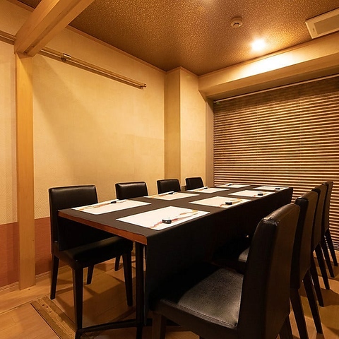 【安心のテーブル席】温かみのある照明に包まれた、落ち着いたテーブル個室をご用意しております。靴を脱がずにご利用いただけるため、ご年配の方にも快適にお過ごしいただけます。心地よい空間で、特別な時間をお楽しみください。