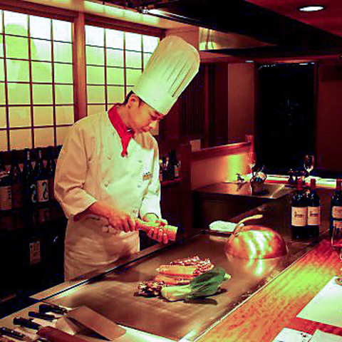 鉄板カウンターでは、担当シェフが目の前で調理いたします。その場でお好みに調理された上質の飛騨牛やかになどのこだわりの素材をごゆっくりお楽しみいただけます。デートや記念日など大切な日にもおすすめです♪