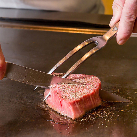 目の前で豪華に焼き上げる特選飛騨牛ヒレステーキをどうぞご堪能下さい。