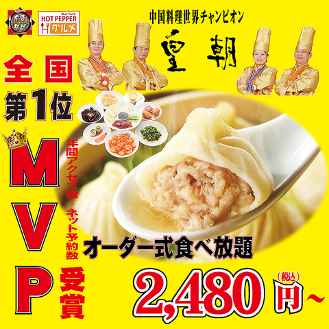 【最高コスパ・クオリティ店】中国料理世界チャンピオンの味をこのお値段でご提供できるのは皇朝だけ!中華街にお越しの際は是非当店で美味しいお料理をオーダー式の食べ放題で心ゆくまでご堪能ください♪