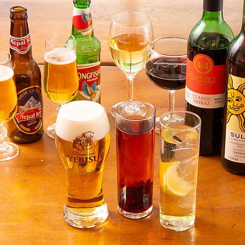 インド料理をつまみながら料理を楽しむご会食におすすめ!エビス生ビール、サワー、カクテル、ソフトドリンクなど各種ドリンクも充実しています。インディアンペールエール「ビラ」やフルーティーなクラフトビール「ネパールアイス」も◎。その他「ラムマサラ」など当店オリジナルのマサラカクテルも常連さんに人気です。