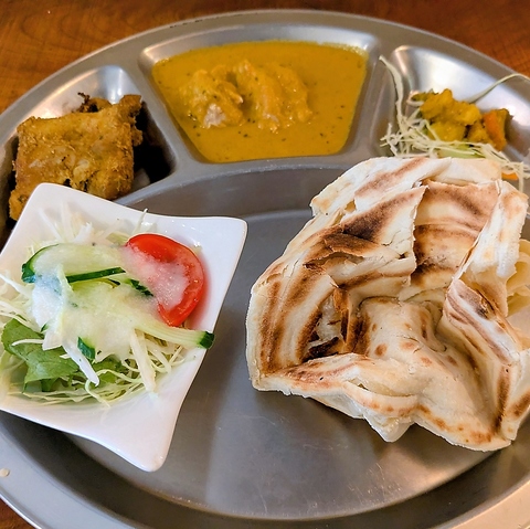 ・タマネギすりおろし自家製ドレッシングの生野菜サラダ・ネパールのピクルス・かまどで焼き立て柔らかくてジューシーなタンドリーチキン・野菜の甘みを感じる絶品カレー1種・サクッとパリッともっちりとした大好評自家製パン「パロタ」またはタイの高級米「ジャスミンライス」