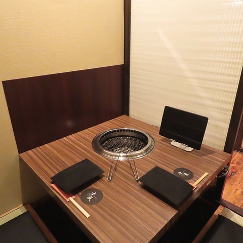 焼肉店には珍しい、2名様専用半個室ご用意しております。お二人だけの時間をお楽しみいただけます。掘りごたつのお洒落な空間で、特別なひとときをお過ごしください。
