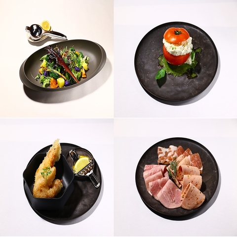 ・本日のこだわり野菜のフレッシュサラダ~柑橘生絞り~季節により柑橘は変わります。・丸ごとトマトのストラチャテッラ愛知県産トマトを丸ごと使用・海老のフリット白姫海老を使用♪頭から尻尾まで丸かじりOK♪・田原ポークのハム3種盛田原市からの贈り物♪3種類の食べ比べ♪