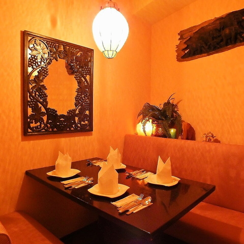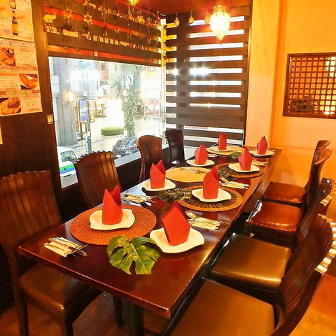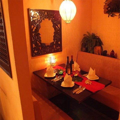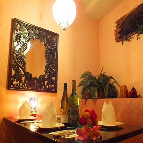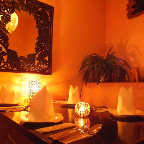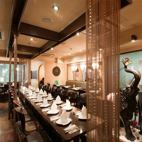一般的なインド料理店のカジュアルなイメージを覆す、洗練された空間デザインが自慢です。日常を忘れさせるような、リゾート気分満点の店内は、飲み会やご友人との気軽な集まりはもちろん、記念日やパーティーでのご利用にも最適です。禁煙のお席のご用意ありますので、お気軽にスタッフへお申し付けください。
