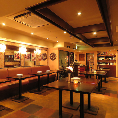 お席は1名様からご利用いただけるテーブル席のほか、半個室のソファー席などもご用意しております。少人数での飲み会やご友人との気軽な集まり、10名様前後でのご宴会利用など、シーンに合わせてお席をご案内させていただきます。アジア各国から集めたインテリアが並ぶシックでオリエンタルな空間をお楽しみください。
