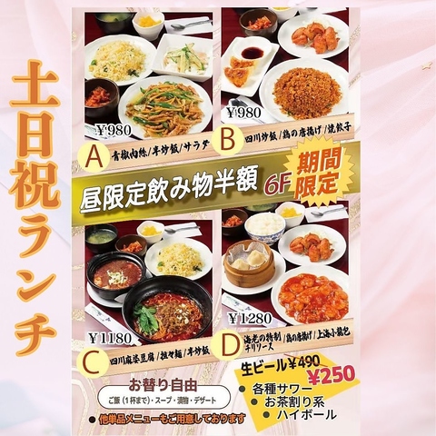 土日祝限定『お得な選べるお替り自由ランチ』980円デザート付き
