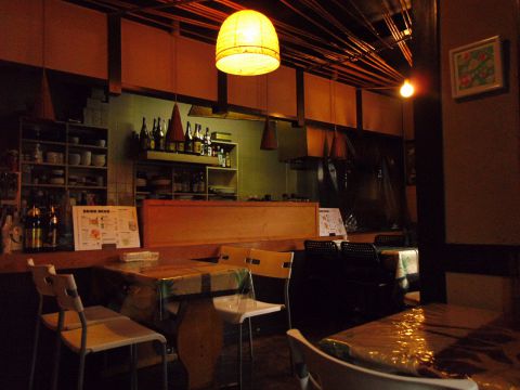 ほのかな灯りに照らされるインテリアはアジアンチックな雰囲気。料理がテーブルにのれば、まるで異国にいるよう。
