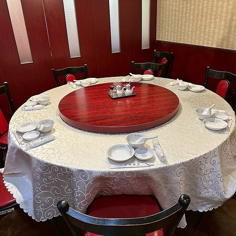 円卓を囲んで本格中華を味わえます。中華といえば、回る円卓!
