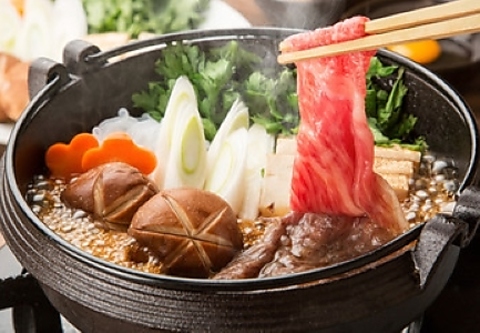 宴会はお料理+飲み放題+消費税がすべてセットの価格となっています(写真:牛すき焼き宴会、120分飲み放題+お料理7品+デザート セット価格税込み5000円)