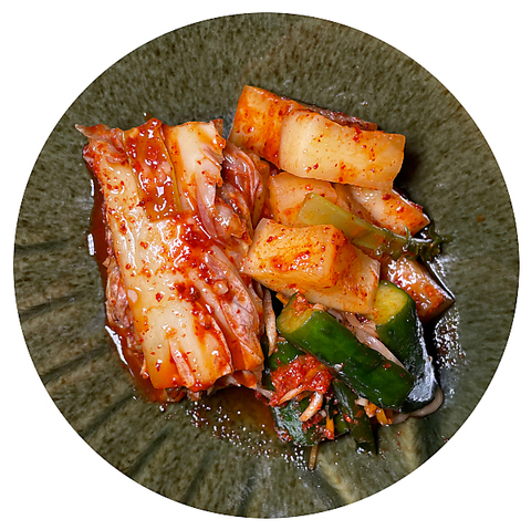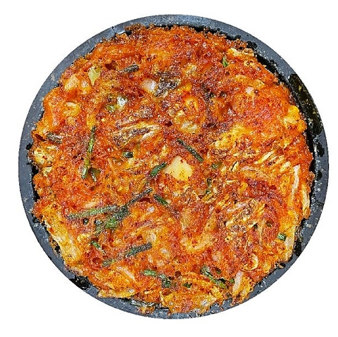 キムチをミックスしたピリ辛のチジミ!当店オリジナルのキムチの旨味も味わえます!