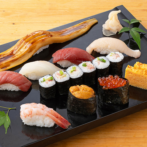 <握り八貫>本鮪中トロ・赤身・旬の白身二貫・一本穴子・甘海老・いくら・うに
