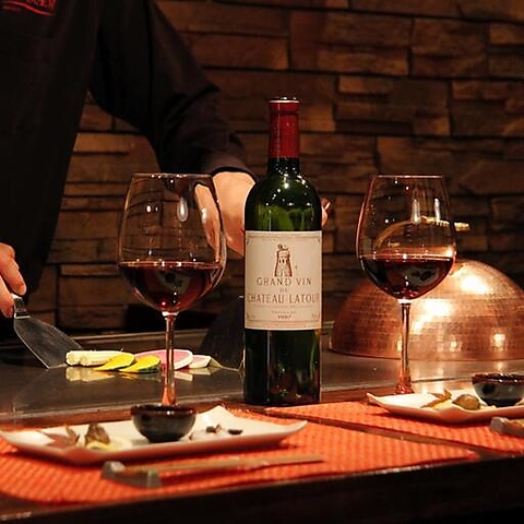 鉄板焼に欠かせないシャンパンやワインは、常時20種類以上の品揃えをご用意しております。歓迎会・送別会等会社宴会にも最適な飲み放題付コースもご用意しております。料理・お酒で至福のひとときをお楽しみください。