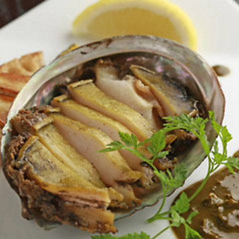 鮑&特撰黒毛和牛コースでのみ楽しめる逸品!身のしまった天然鮑に肝醤油ソース…通も唸る美味一級品!ご来店の際はぜひ一度召し上がっていただきたい、オーナーおすすめの逸品です。