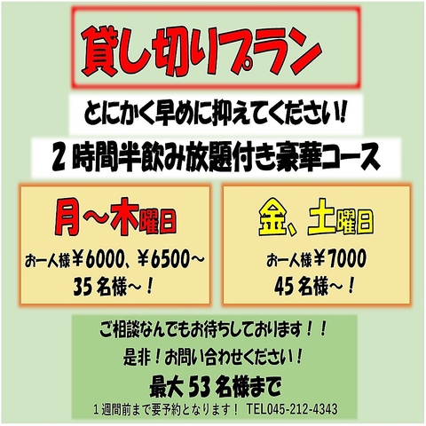 早い者勝ちです!!幸喜屋を貸しきちゃってください!!