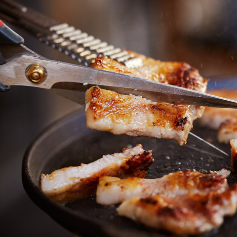 サムギョプサルは水晶で焼き上げます!煙も少なく遠赤外線効果でお肉の旨みが中に閉じ込められジューシー!