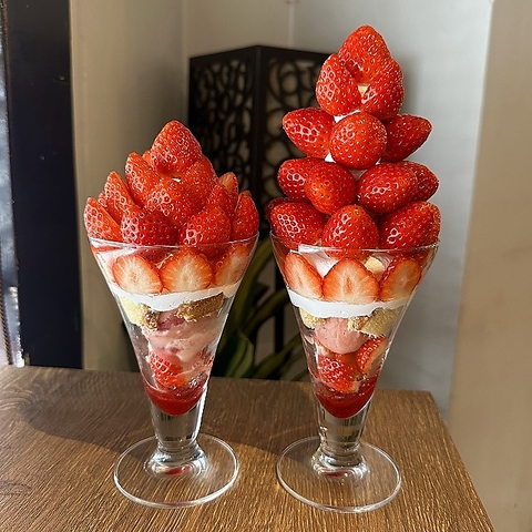 「季節のパフェ」シリーズ。只今の季節は、「いちごパフェ」!!数量限定。お早めに!NORMAL1750円、BIG2450円