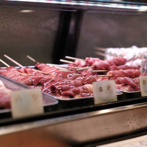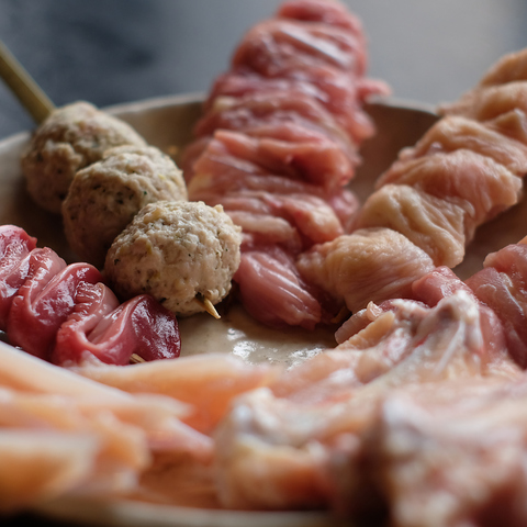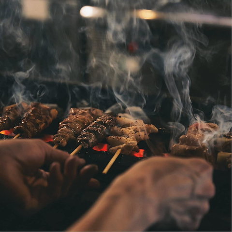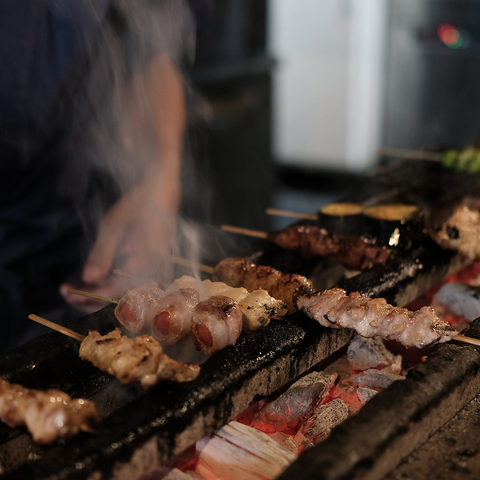 広島県下の廣島赤鶏や薩摩知覧鶏・黒豚等、毎日直送される新鮮な食材を丁寧に仕込み、備長炭で焼き上げる。