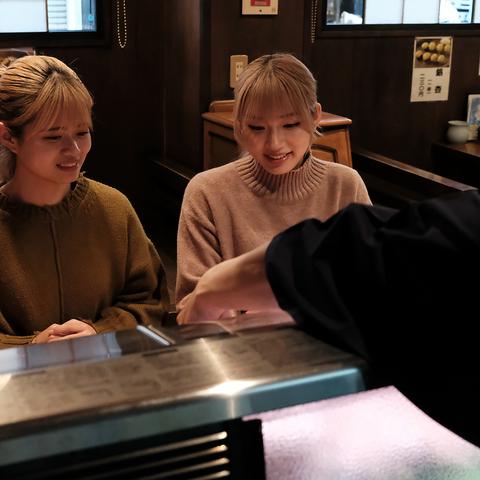 炭火のパチパチと炎を上げる音、ジューッと焼きあがる香ばしい香り…デートや仕事帰りの一杯など、少人数ならオススメはカウンター!毎日丁寧に手打ちされた串を、こだわりの備長炭で一気に焼き上げます。外はかりっと、中はふっくら弾力があるように焼けるのは伝統の雷ならでは…!初めての方には、まずはココで楽しんでいただきたい。