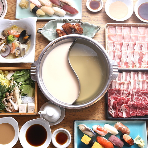 しゃぶしゃぶ(またはすき焼き)食べ放題に握り寿司と一品料理が50種類食べ放題!