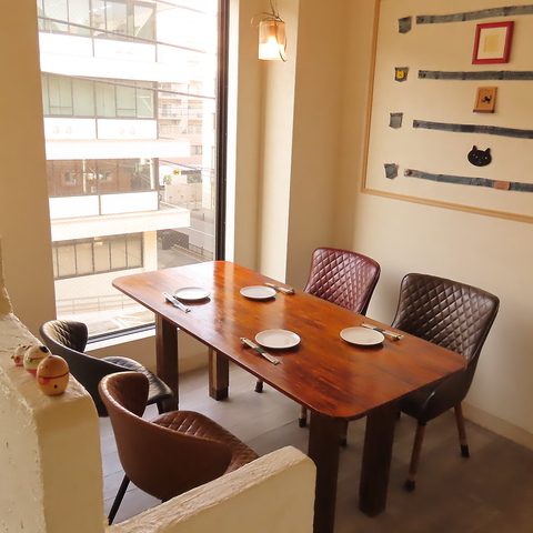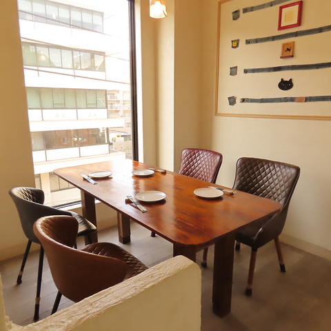 【窓側半個室のテーブル席】外の雰囲気を感じながら料理を堪能できます。人気のお席なので早めのご予約を★(こちらのお席は禁煙席となります。)