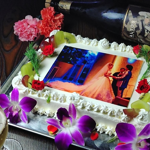 記念日やWeddingの二次会でもみんなが感激する当店自慢のプリントケーキ♪少人数様向けも♪