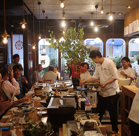 コの字型のカウンター席、調理のライブ感と臨場感をぜひお楽しみください!