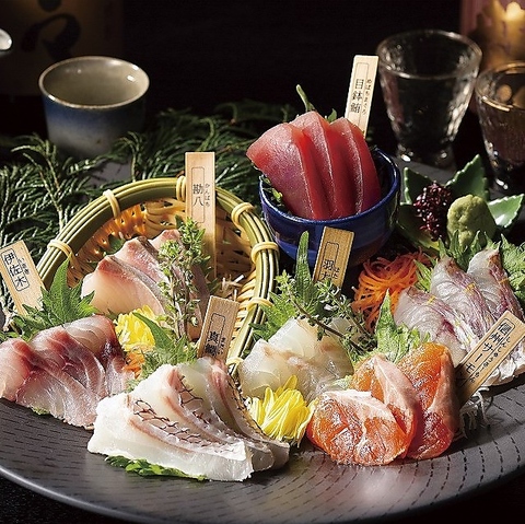 仙台中央卸売市場 鈴力水産の直送鮮魚などを盛り込んでおります。単品のお造りもご用意しております。