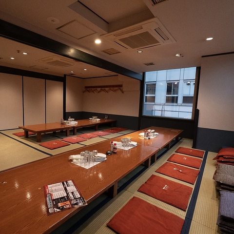 最大84名様までのお座敷個室はテーブルと椅子を配した宴会に打ってつけ!靴を脱いで上がれます。