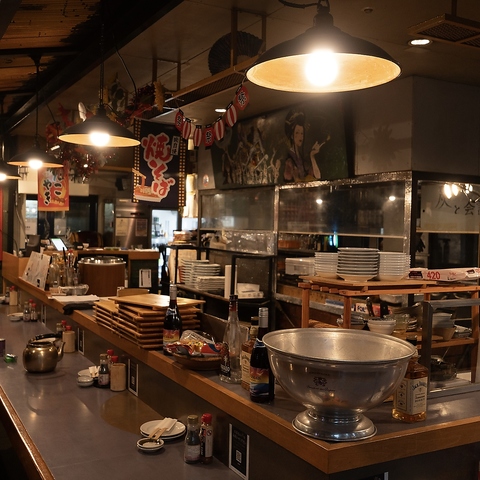 【カウンター席充実】お一人様からカップル、友達と楽しいひと時を。板場の番長と仲良くなれるチャンス!笑。食事やお酒を楽しみながら、特別な思い出作りを。寿司・刺身・焼き鳥など、多彩なメニューを心行くまでお楽しみいただけます。