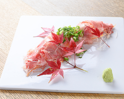 猿々楽々名物!!『国産牛のコーネの軽い炙り』猿々楽々に来られている方はこちらの商品を食べに来ているといっても過言ではないぐらいの人気商品です。噛めば噛むほど口の中で肉の旨味が溢れてきます。