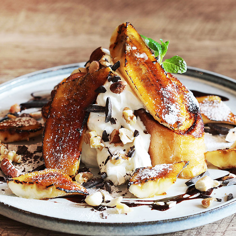 フレンチトーストに相性の良いチョコソースとキャラメリゼしたバナナのベストマッチ!