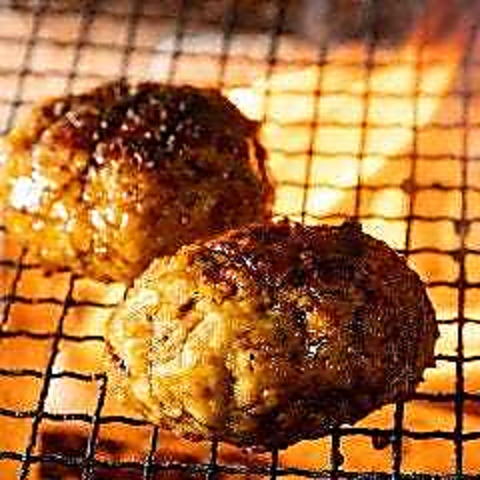 もも肉むね肉に親鳥ミンチを加え歯ごたえアップ!宗像産の卵を使用しパン粉、酒など11種のスパイスで味を調え、うまみを引き出すために1日寝かせて、仕上げに炭火で炙ってご提供いたします!種類豊富なトッピングはチーズが一番人気です♪