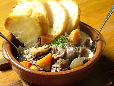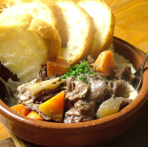 バゲットを添えた「煮込み料理」は、じっくり煮込んだ深い味わいがお酒との相性抜群◎人気の「ガーリックピザ」など、お酒が進むアラカルトメニューも充実♪忘年会や歓送迎会などのご宴会には、お得な飲み放題付きコースが最適です。シーンに合わせたプランで、楽しいひとときをお過ごしください!